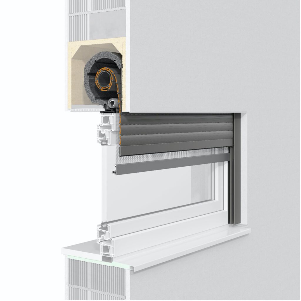 Vollständig eingeputzter Kasten aus hartgeschäumtem Polyurethan und besten Wärme- und Schalldämmwerten.